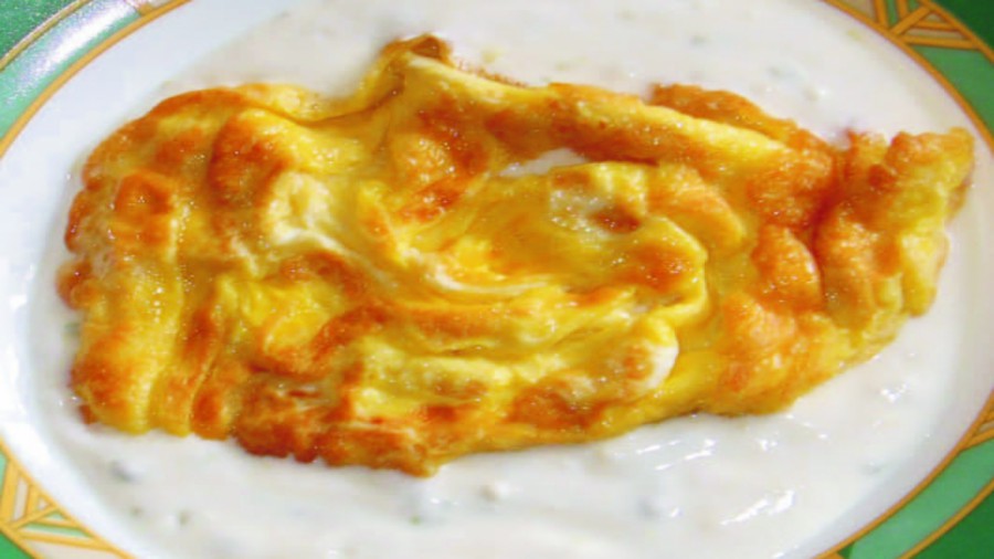 Genişçe bir kapta sarımsaklı yoğurt hazırlanır. Diğer taraftan geniş bir tavaya yağ konularak ısıtılır. Bir kap içerisine yumurtalar kırılıp tuz ilave edilerek iyice çırpılır, kızgın yağın içerisine dökülerek omlet şeklinde pişirilir. Pişen yumurtalar sarımsaklı yoğurdun içerisine oturtularak servis yapılır.